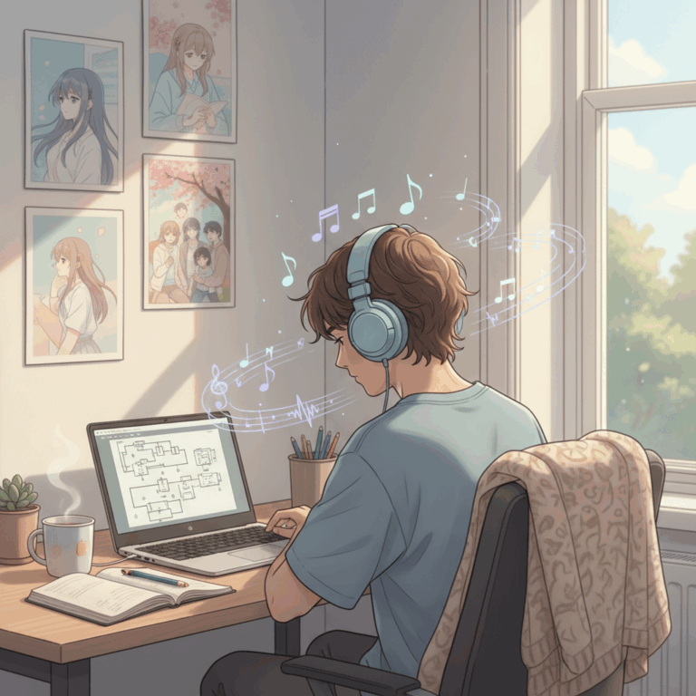 La música Lo-fi y los temas suaves de anime generan un ambiente ideal para el estudio, facilitando el enfoque mental y prolongando la atención durante largas sesiones.